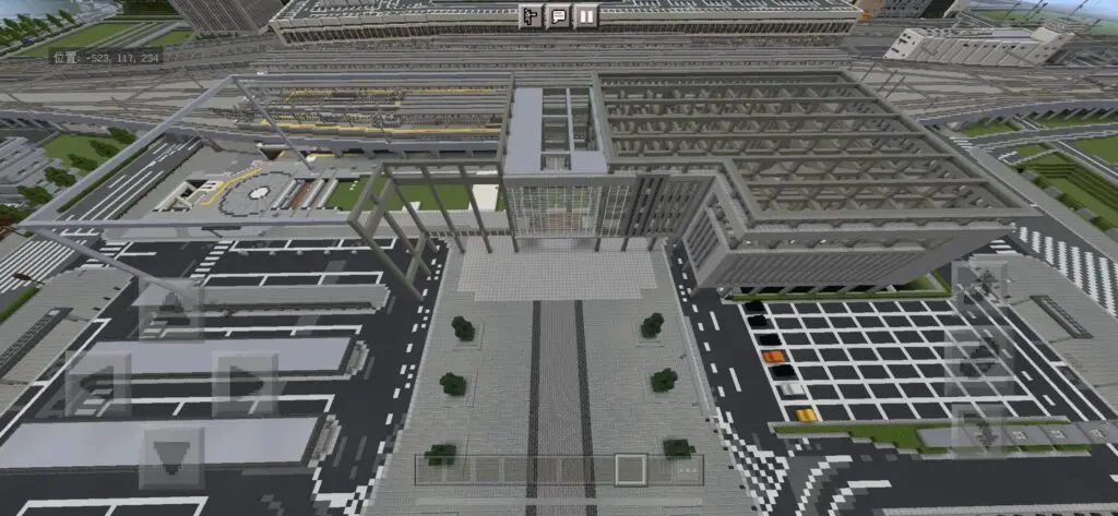 また、前回紹介した駅ビルの1階部分と地下部分に交通施設を設けました。1階にはバスターミナルを、地下1階は私鉄駅のコンコースを、地下2階には駅のホームを設けました。ただ、この時は私鉄の駅と言っても私鉄そのものの具体的な設定が決まっていなかったので、後に移設することになります。バスターミナルの入る駅ビルも改変される事となります。